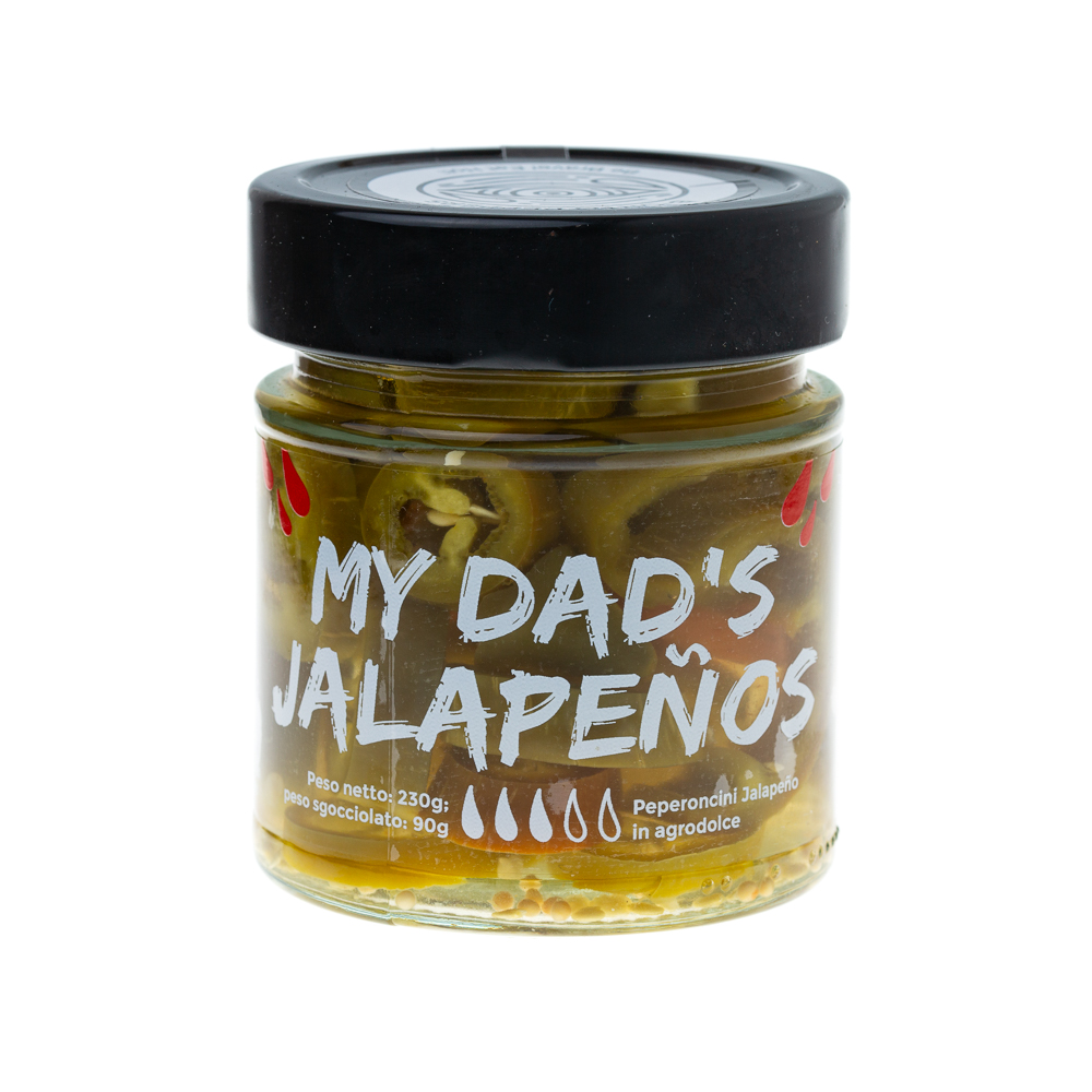 Scopri My Dad’s Jalapeno, i peperoncini che fanno sul serio… sott’aceto! Croccanti, leggermente aciduli e con quel pizzico di piccantezza tipica degli jalapeños, sono pronti a dare sprint a qualsiasi piatto… e magari a strapparti un sorriso.