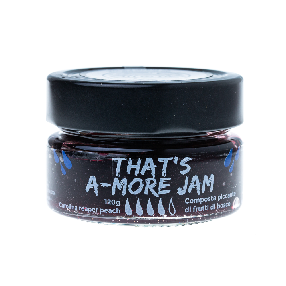 That’s A-More Jam nasce dall’unione della dolcezza e dell’acidità dei frutti di bosco coltivati da noi in Friuli con la piccantezza intensa della Carolina Reaper (0,6%), creando un equilibrio sorprendente tra gusto fruttato e calore aromatico. Perfetta per chi ama sperimentare abbinamenti audaci, è ideale sia a tavola che in cucina.