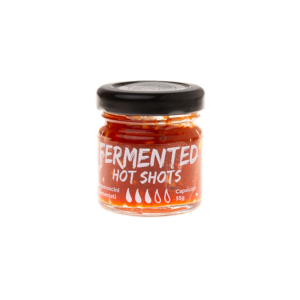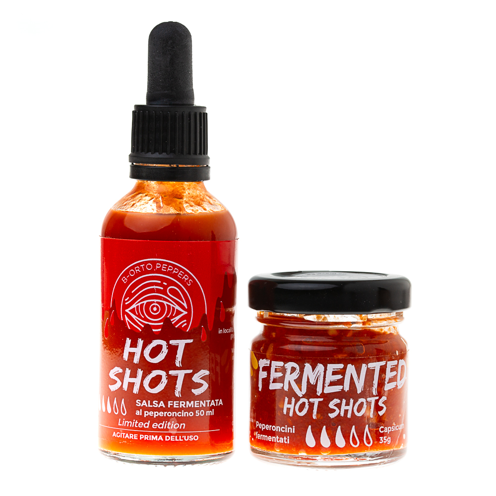 Hot Shots è una crema fermentata artigianale ottenuta da un blend esclusivo di peperoncini Capsicum — diverse specie e varietà accuratamente selezionate per bilanciare profumo, piccantezza e profondità aromatica.