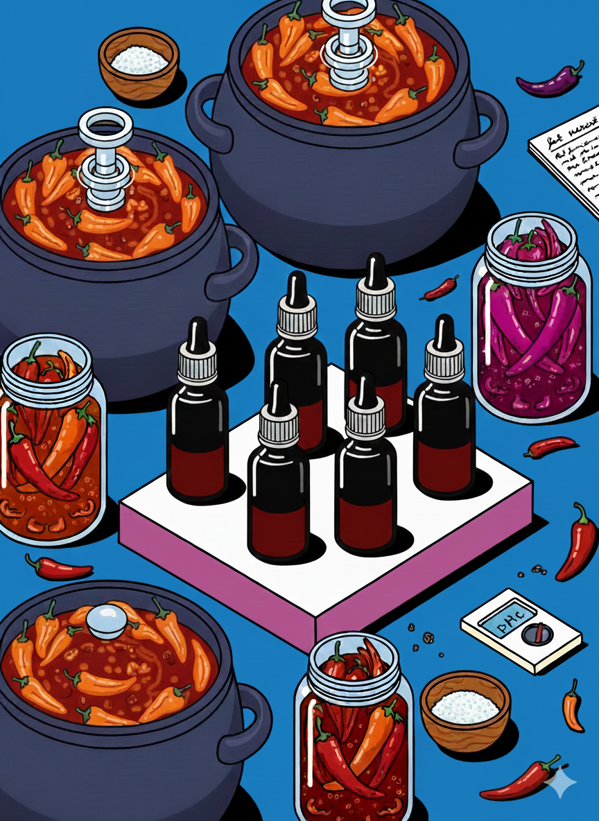 Il risultato? Una conservazione superiore che mantiene intatta la vitalità della fermentazione e la potenza aromatica del peperoncino nel tempo. In questo formato, la piccantezza non è solo estrema, è preservata nella sua forma più pura e vibrante.